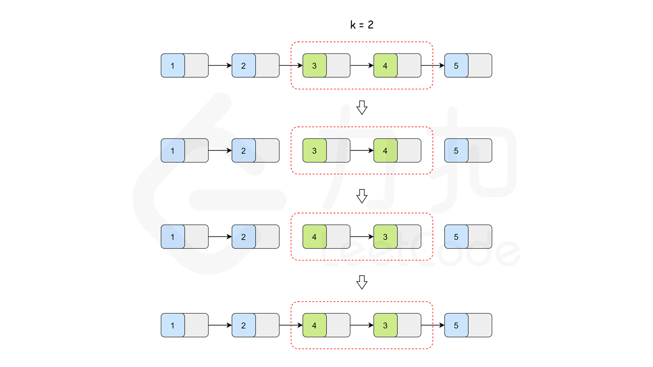 输入:head = [1,2,3,4,5], k = 3